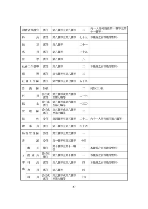 人 副 處 長 簡任 第九職等至第十職等 一 本職稱之官等職等暫列。