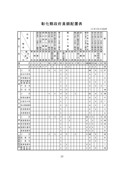 彰 化 縣 政 府 員 額 配 置 表