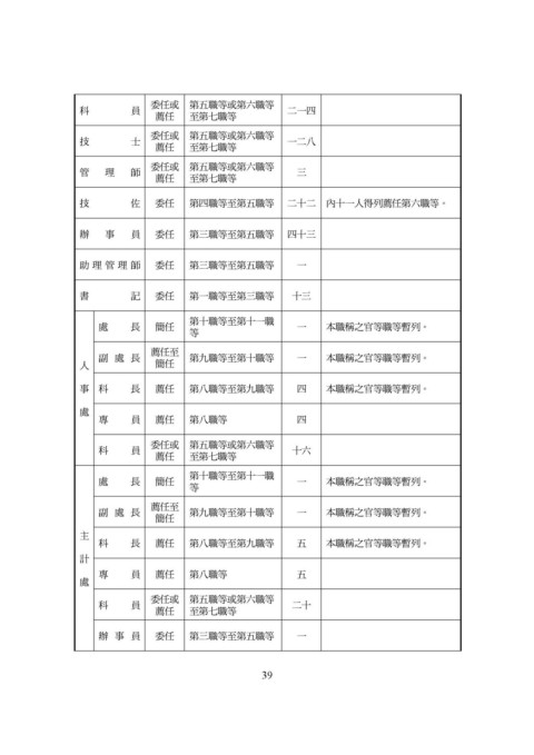 事 科 長 薦任 第八職等至第九職等 四 本職稱之官等職等暫列。