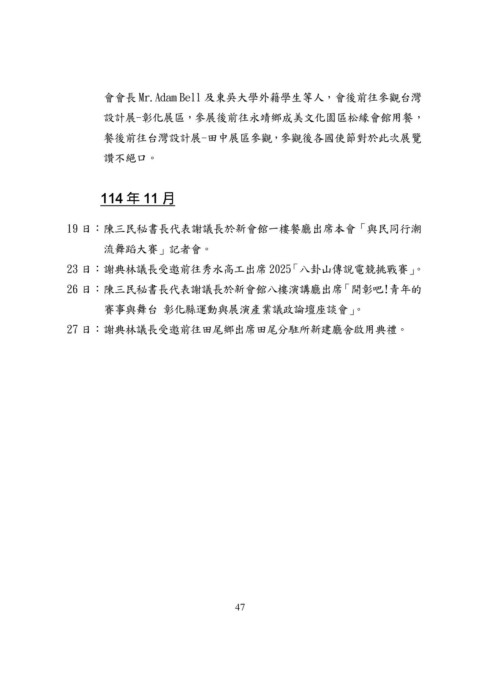 26 日: 陳三民秘書長代表謝議長於新會館八樓演講廳出席「開彰吧!青年的