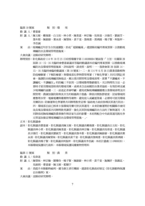 15、16 次臨時會臨時動議案(第 10 號案)。二、查 114 年 6 月 26 日農業部動植物